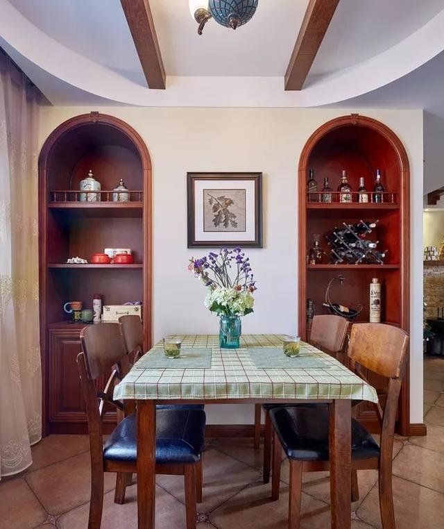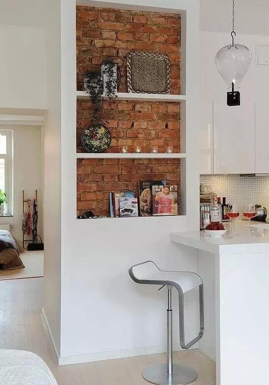 用餐時我們難免會用到一些調(diào)味料或是飲品,與其跑到廚房拿取不如在餐桌周圍設(shè)計一個收納空間。比起買餐邊柜這種壁龕設(shè)計要更實用一些,它不僅可以根據(jù)家里的風(fēng)格做成各種造型,而且價格比定制柜還要便宜。