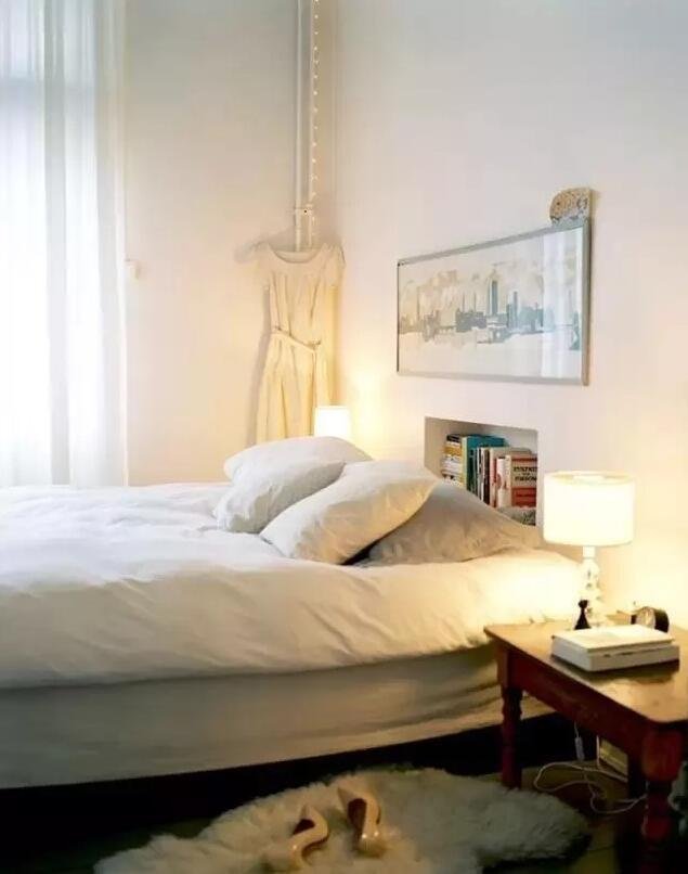 也許有些人有閱讀的習(xí)慣,每次臨睡前還要到書房拿書也很不方便。不如在臥房也做一個壁龕,這樣不占地方還可以把常看的書籍放在這里。而且除了書籍我們也可以放一些裝飾品或常用的小物件,比起床頭柜更實用一些。