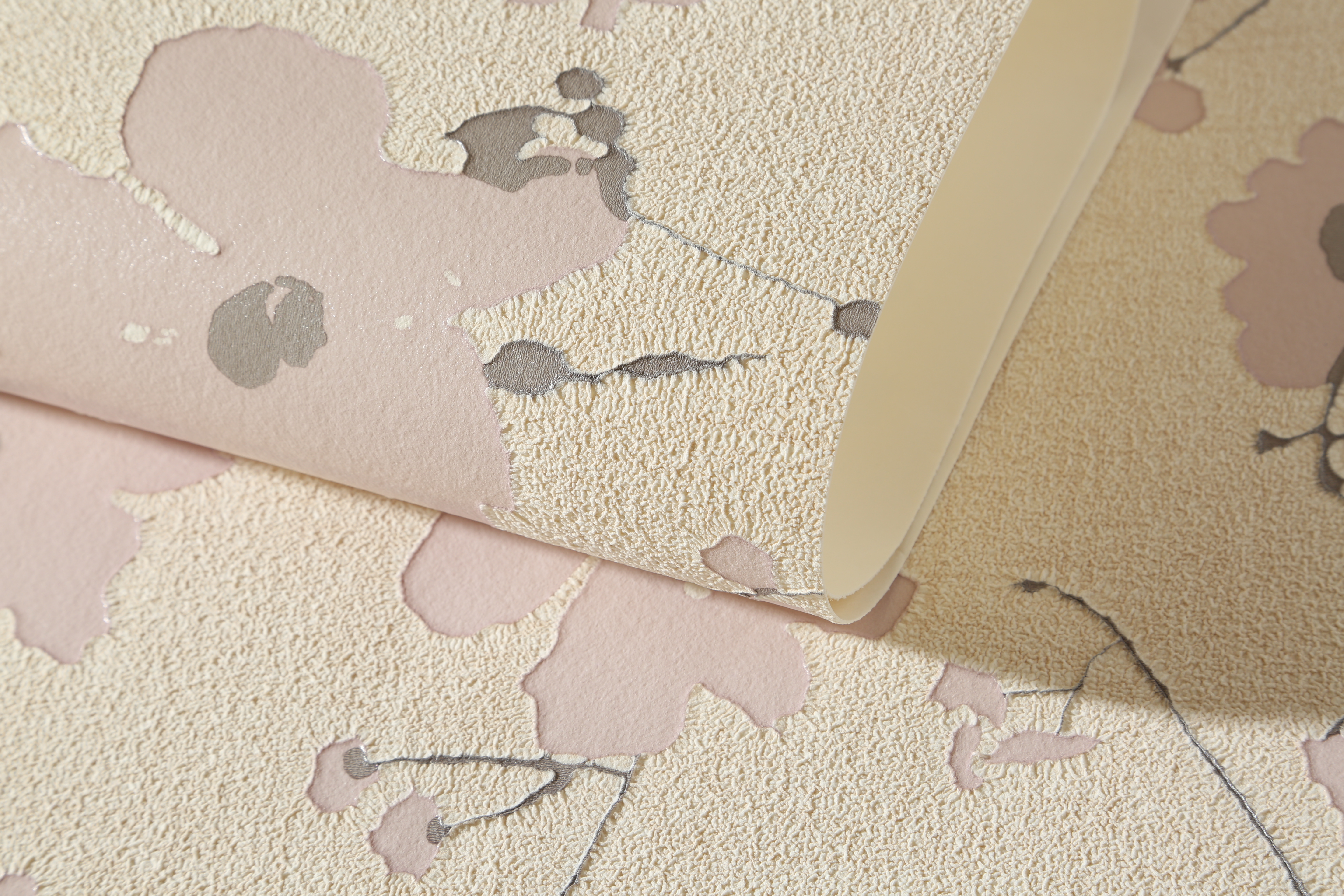 該墻布采用了棉、麻等天然的纖維或滌綸、晴綸等進行合成纖維,經過了無紡成型、上樹脂、印制各色花紋而成。不僅表面光滑、有彈性、對皮膚也沒有刺激性,可進行擦洗不易褪色。