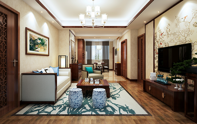 門(mén)廳的頂棚一般要考慮與地面的呼應(yīng)關(guān)系,從二者之間的形狀、位置方面、作一呼應(yīng),從而進(jìn)一步強(qiáng)化空間特征。因門(mén)廳一般屬于非絕隔斷空間,那么在頂棚造型設(shè)計(jì)上,一般要考慮作成完整交圈的設(shè)計(jì),目的是在開(kāi)敞中求獨(dú)立。